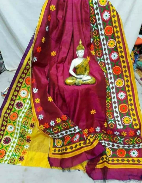 Kantha sarees come from West Bengal, India. It is one of the oldest forms of embroidery practiced in Bangladeh and West Bengal, practised by rural women to adorn women's shawls and covers for mirrors and pillow covers but most popularly used to make Kantha Silk Sarees.